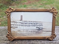 Antique Brass Picture Frame with Bows-ARCO-England-Old Photo of Tourist Ship
