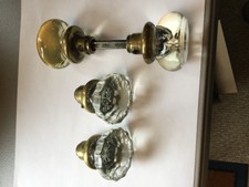 Antique Clear Glass & Brass Set Round Crystal Old Door Knob Handle + 2 more