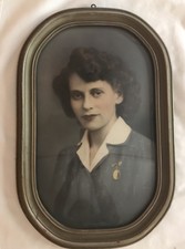Antique Oval Glass Bubble Frame With Original Photo Of Woman