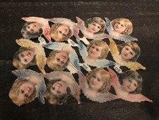 Antique Die Cut C 1890 German Uncut Angel Paper Doll Faces Scraps Christmas
