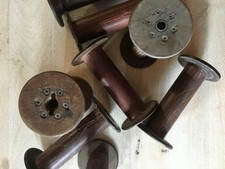 9 Wooden Spools - Antique Textile Spools, Yarn Bobbins. Shipping Cost Included.